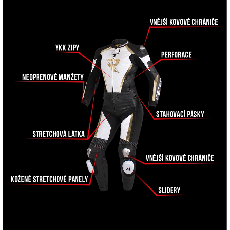 Česká značka Street Racer si vás získa svojím prevedením a štýlovým výzorom. Moto jeansy alebo kožené bundy zaujmú svojím spracovaním a stávajú sa čoraz obľúbenejšími. Každý model prechádza dôslednou kontrolou a je doladený do najmenšieho detailu.