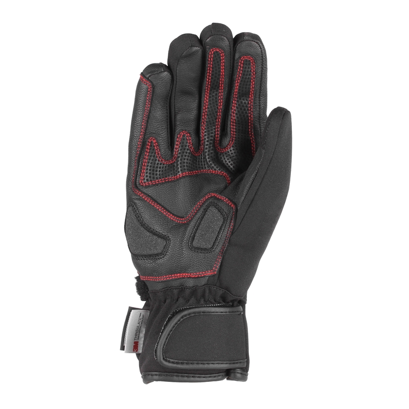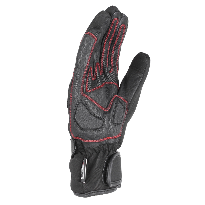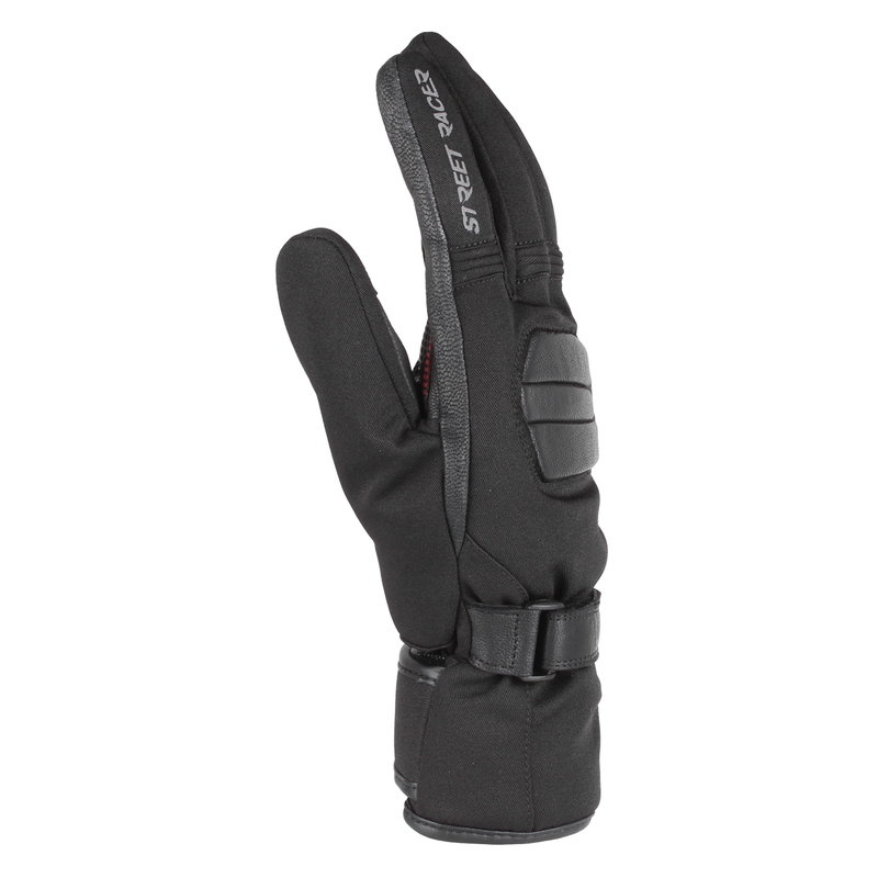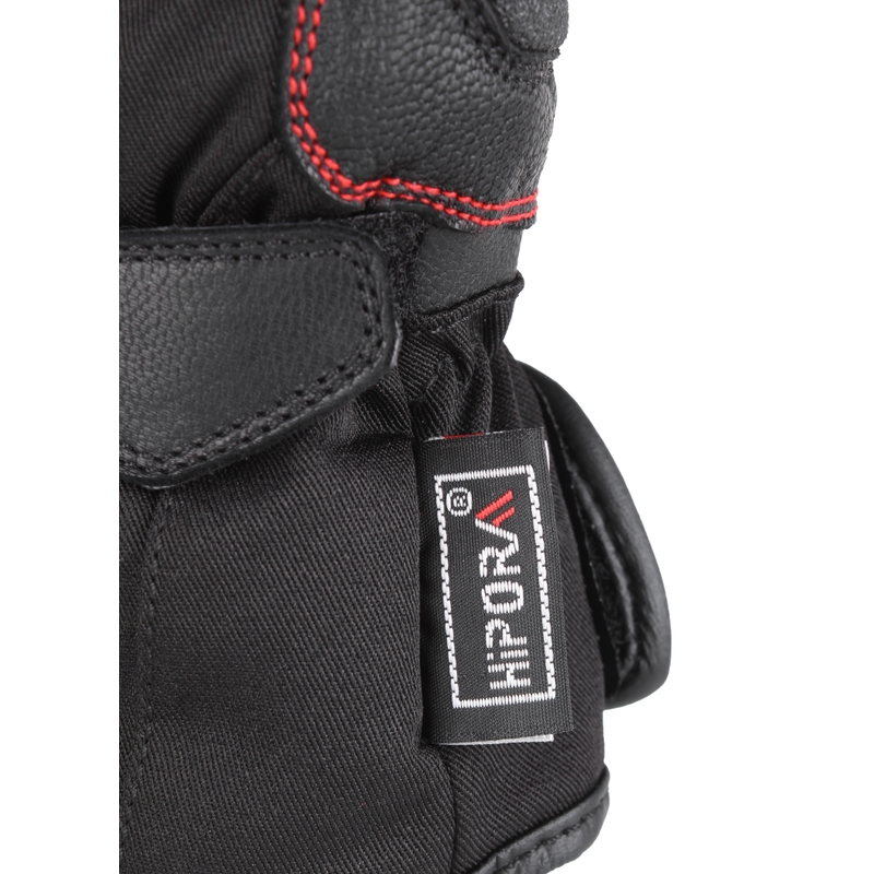 Vonkajšia textilná časť rukavice kombinovaná prvkami z eko kože.